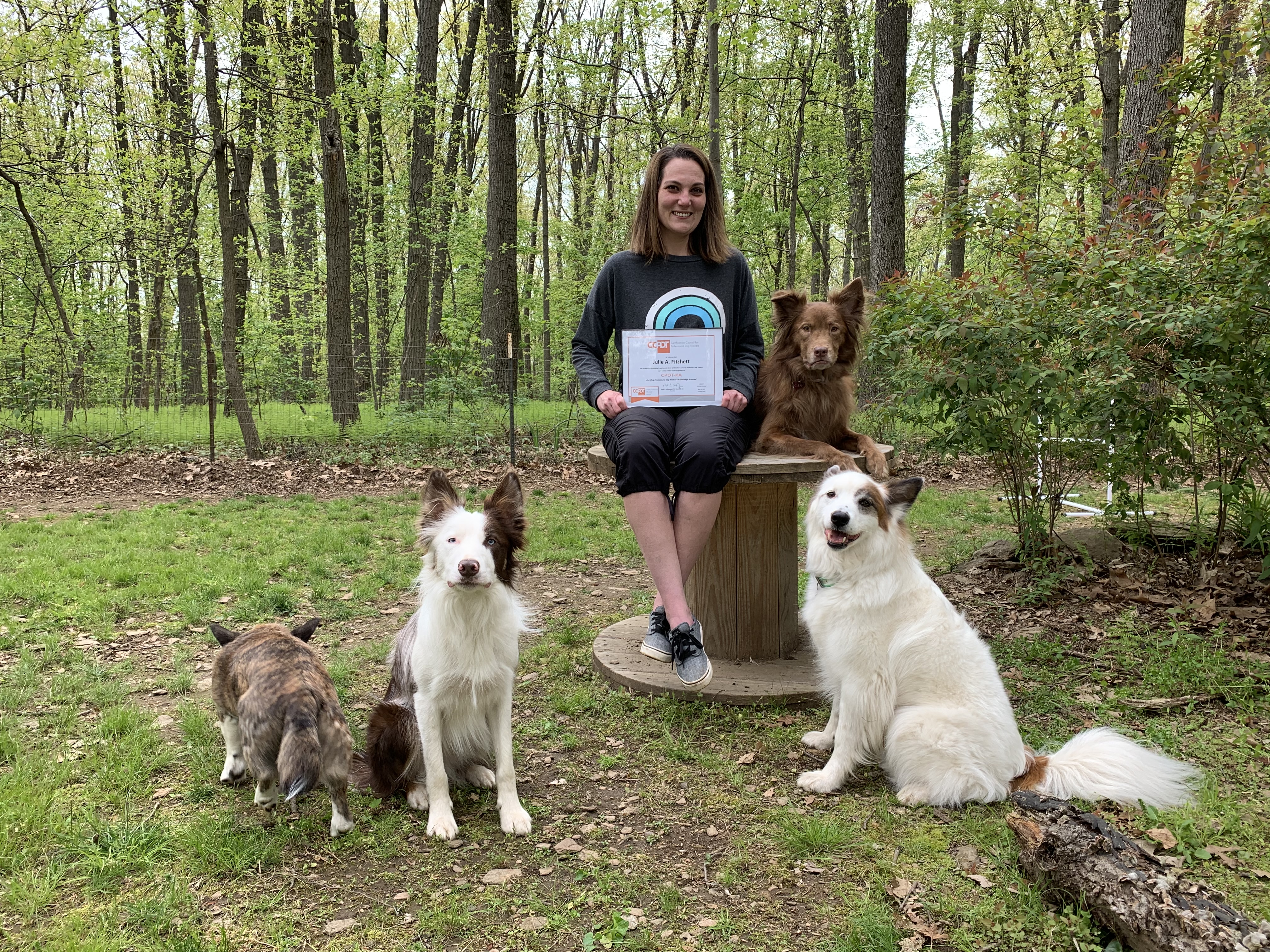 My love for animals began in my childhood and has grown into a passion. I started training my first dog, Cubby, an All-American, as my medical assistance dog in 2013, under the guidance of a certified behaviorist, who also taught Assistance Dog Training. I enjoyed seeing Cubby’s progress, and successwith every test that he was given, I wanted to see what else I could teach him. I got involved with agility because it seemed fun and a really good way for me to bond with Cub and increase his confidence level. From there, my passion spiraled, and I started assisting in teaching classes, and I adopted a high-drive, very excited, anxious, and nervous All-American dog named, Bear. Bear has challenged me and prompted me to explore more on learning dog behavior. I have completed a dog-training and behavior program, and am CPDT-KA certified (Certified Professional Dog Trainer- Knowledge Assessed). I am a professional member of APDT, and I am an AKC Canine Good Citizen and AKC Trick Dog evaluator. I continue to expand my knowledge through attending behavior seminars, conferences, online classes, and continuing education work.